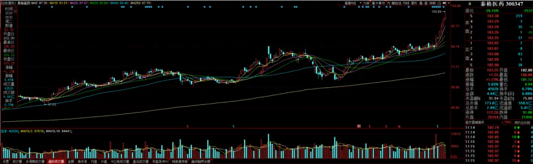 创业板这里昨天没有跌破5日均线,所以依旧是强势结构,短期还是以5日均线做参考,不跌破就可以继续持股待涨。今天市场情绪稳定,整体是一个普涨结构,大家可以继续持股待涨!