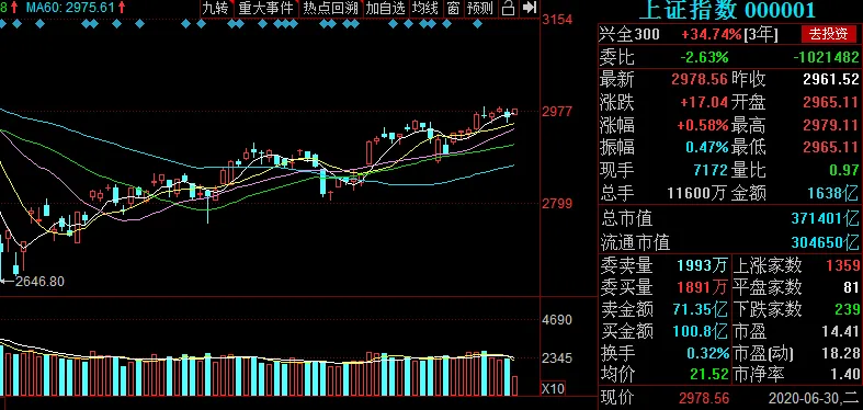 上半年最后一个交易日,下午指数预计还会拉升,但是个股已经到高点了,只能留意低吸机会,不要随便追涨停。