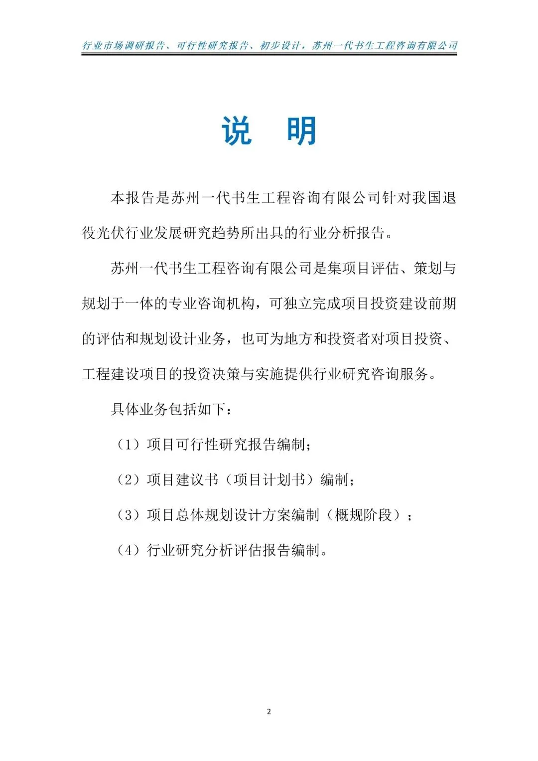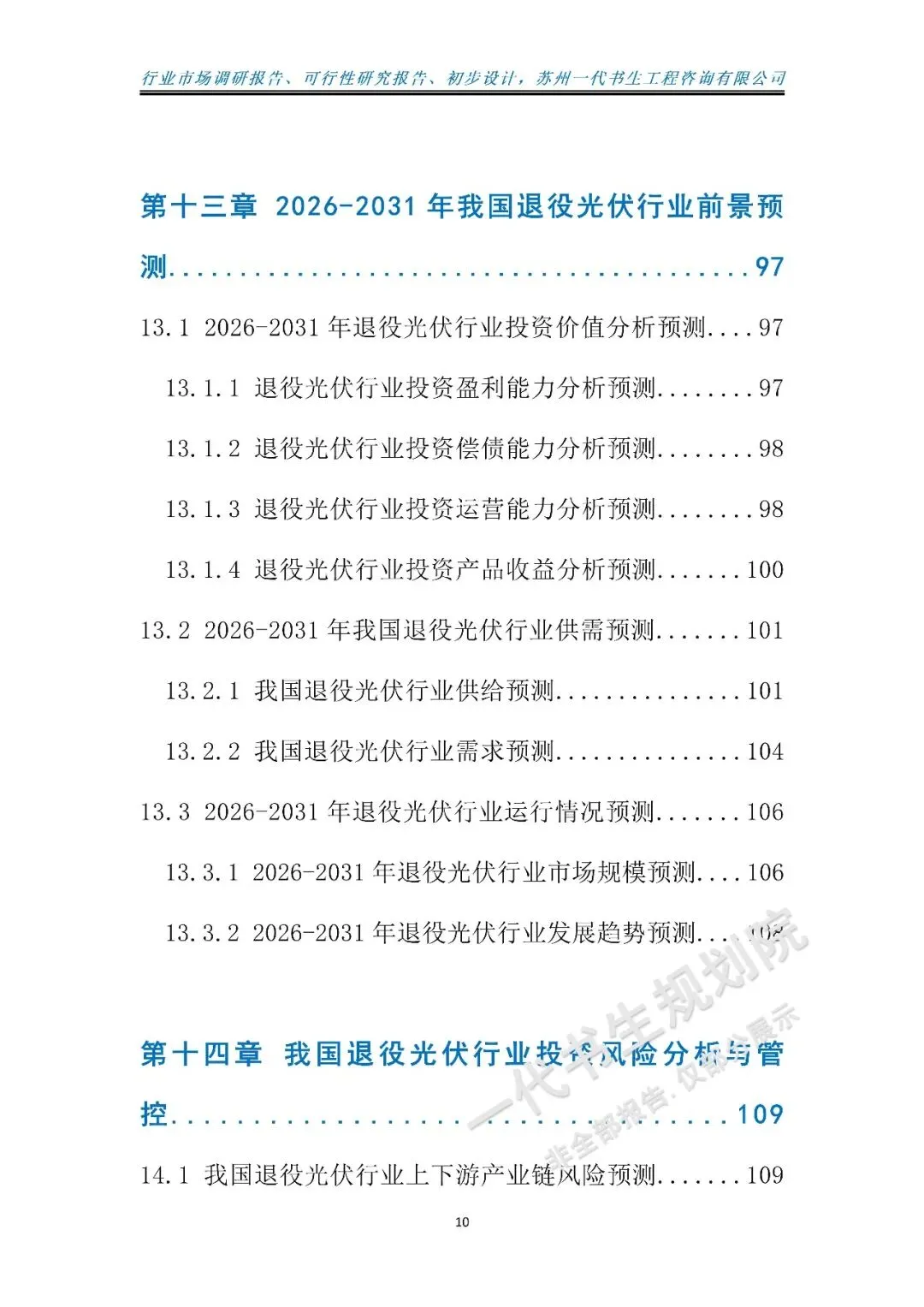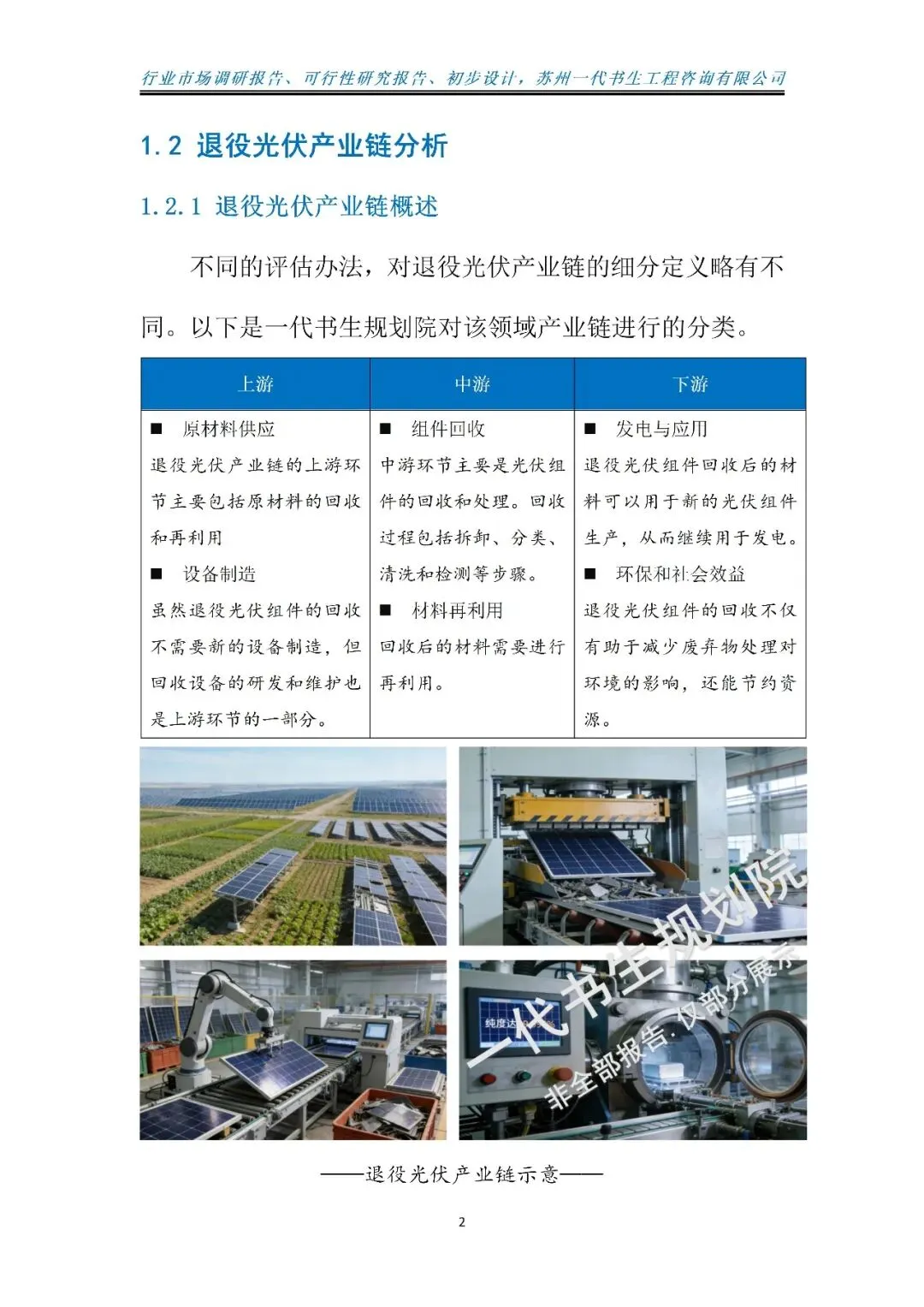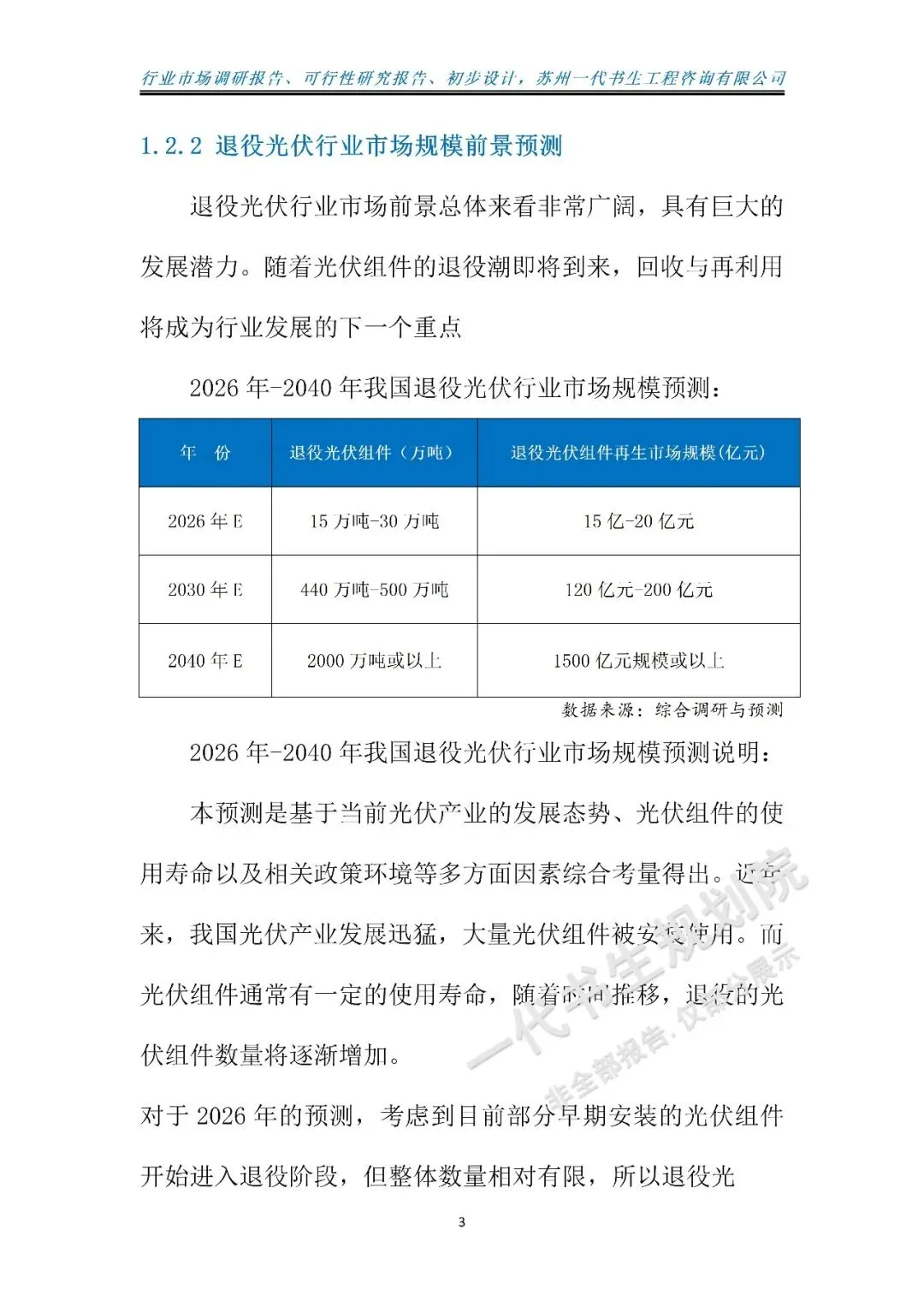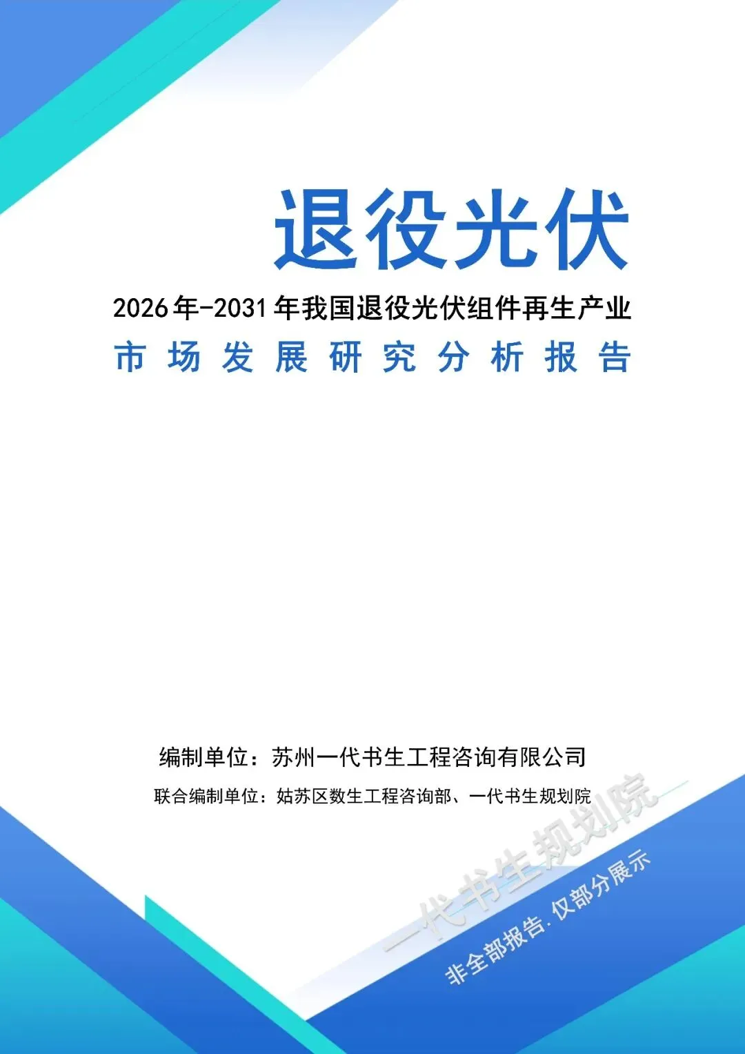 本报告由苏州一代书生工程咨询有限公司编制,聚焦2026-2031年我国退役光伏行业发展周期,深度洞察行业发展脉络与未来走向。报告立足“双碳”战略深化实施的宏观背景,紧扣政策引导与绿色循环发展的核心要求,精准把握产业升级下退役光伏市场的需求变革,系统剖析行业发展的核心驱动因素与潜在挑战。