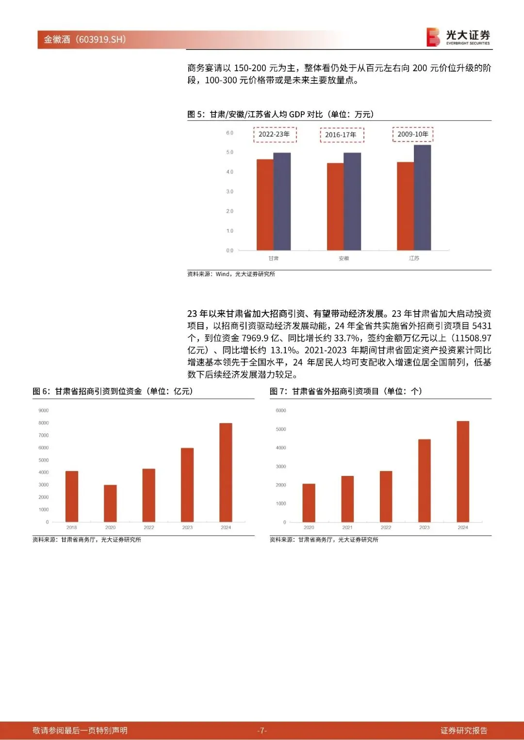 1)甘肃省白酒市场容量接近百亿元,目前大众用酒主流价位百元以内、商务宴请以150-200 元为主。对比安徽江苏,甘肃白酒消费仍处于从百元向 200 元价位升级阶段。近年来甘肃省以招商引资驱动经济发展,固定资产投资增速领先全国,低基数下后续经济发展潜力较足。
