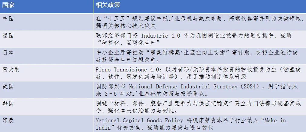 从全球竞争格局看,工业母机已成为各主要制造强国重点布局的战略领域。围绕关键核心技术自主可控、供应链韧性与产业升级,各国不断加大政策支持和长期投入。