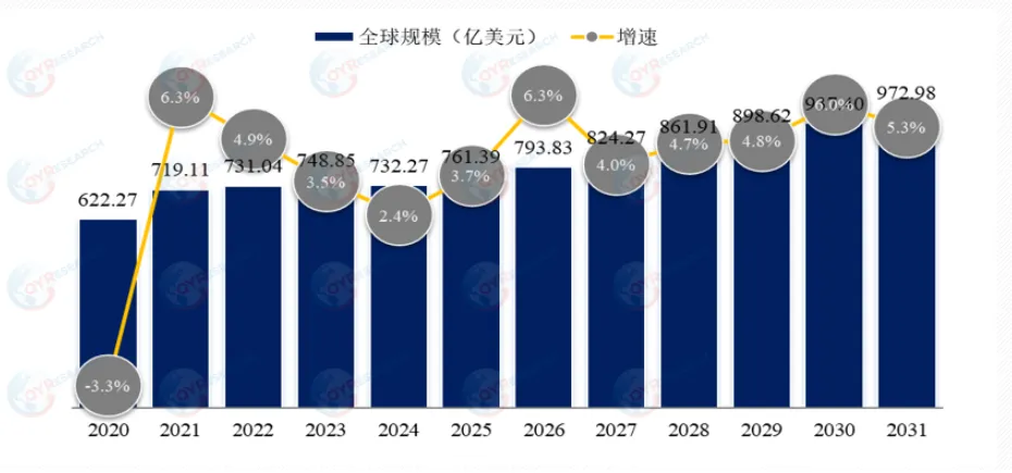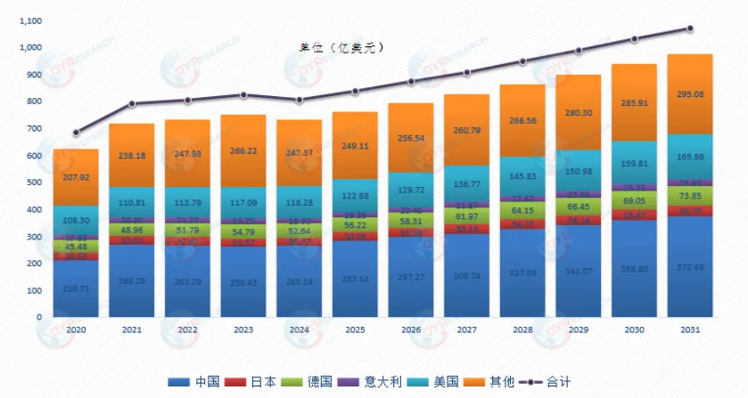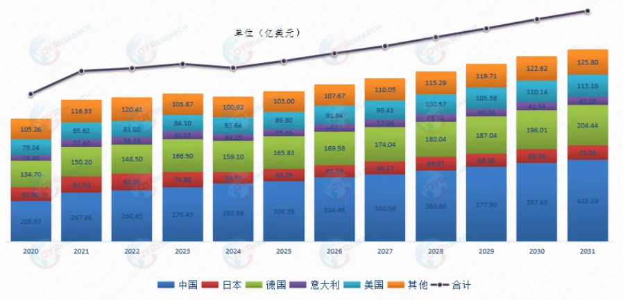 根据各国机床协会及企业端统计,2024年全球机床行业规模达到了732亿美元。根据QYResearch预测,2031年全球机床市场规模将达到937亿美元。