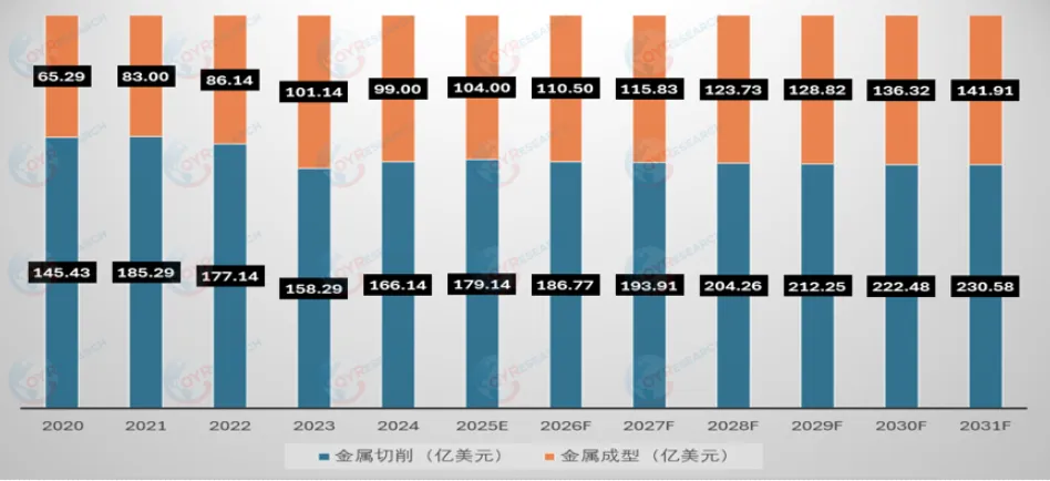 预计到2031年,中国金属成型机床市场规模将达到142亿美元,金属切削机床市场规模将达到230亿美元。