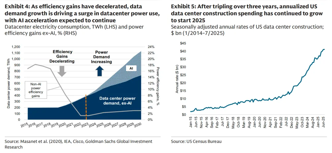 - 能效增益减速:非AI数据中心能效年改善率从历史高位回落,AI服务器能效增益也难以完全抵消需求增长