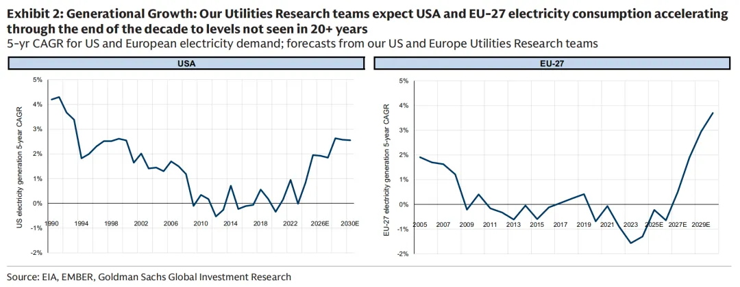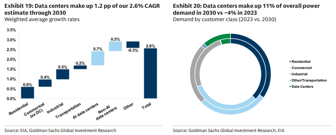 - 美国电力需求增速将升至2.6%(1990年代以来最高),其中数据中心贡献1.2个百分点