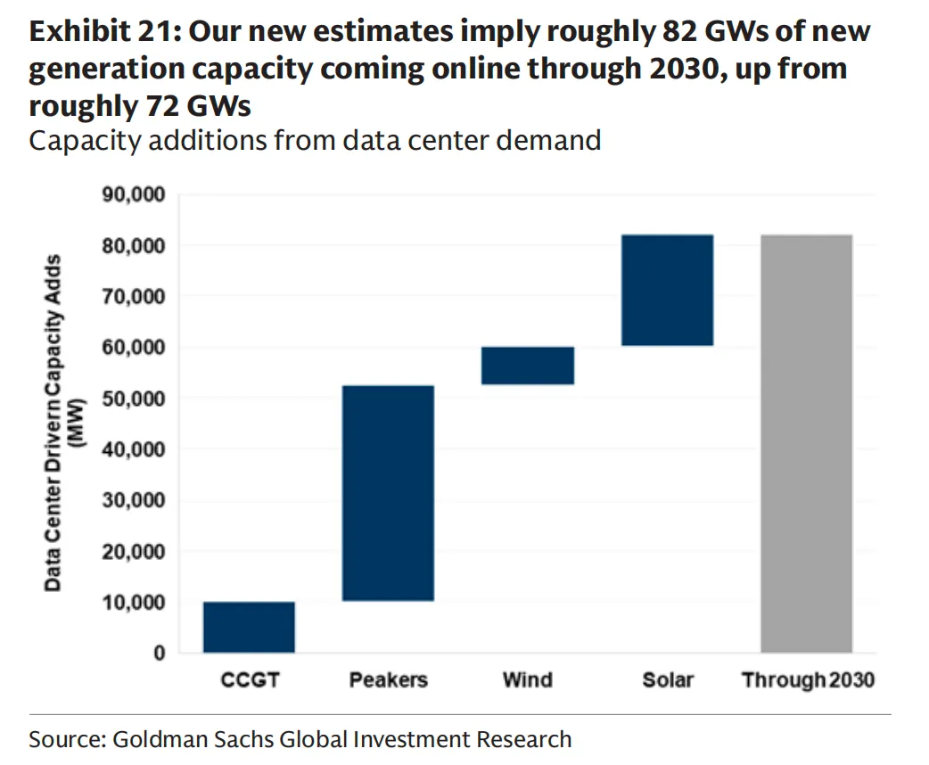 - 需新增82GW发电容量(此前预计72GW)以满足数据中心需求