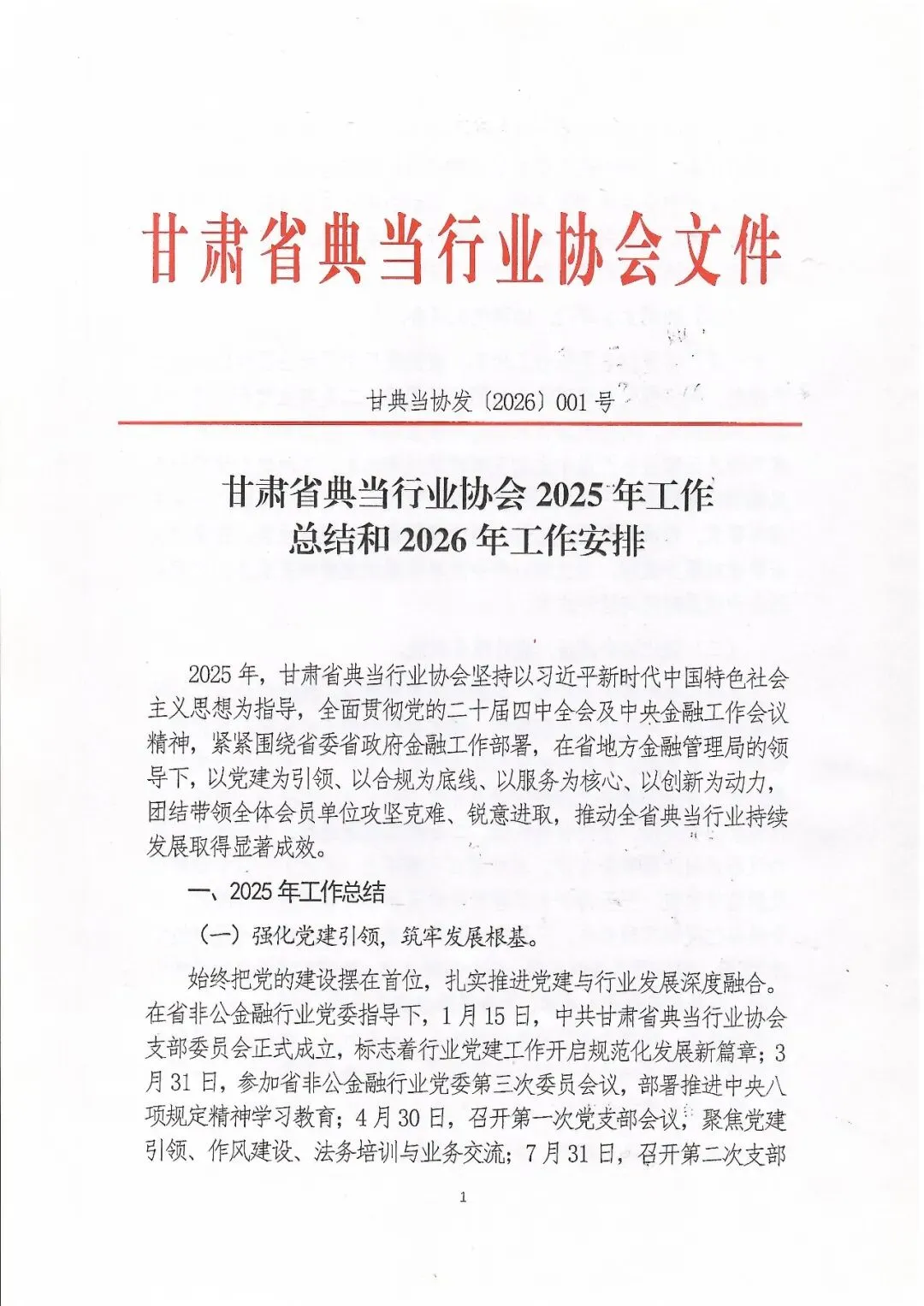 甘肃省典当行业协会 2025 年工作总结和 2026年工作安排