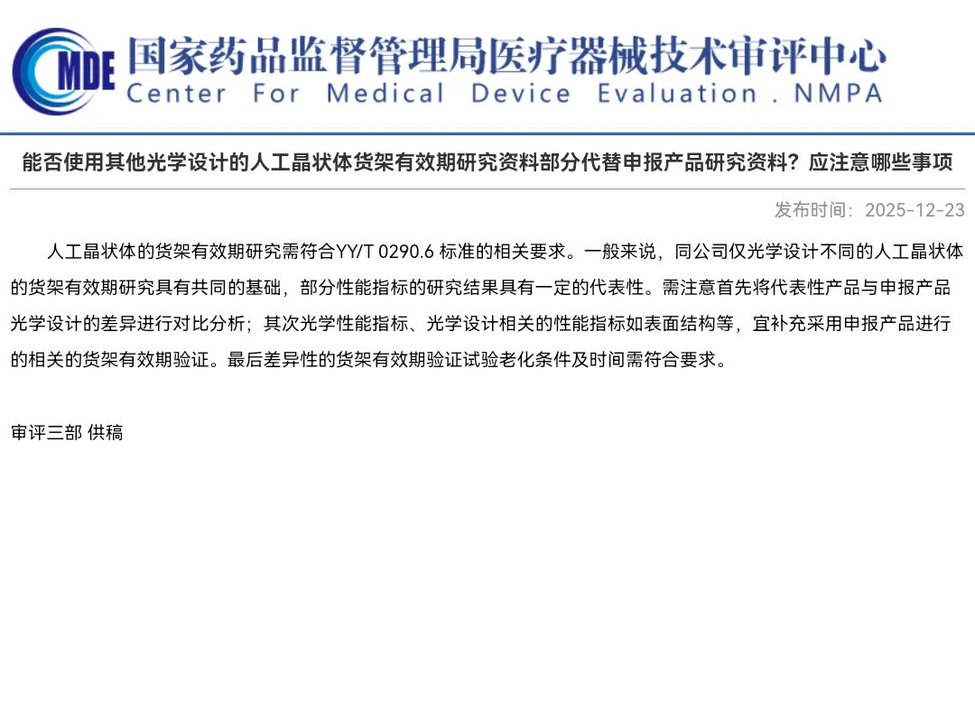 能否使用其他光学设计的人工晶状体货架有效期研究资料部分代替申报产品研究资料?应注意哪些事项