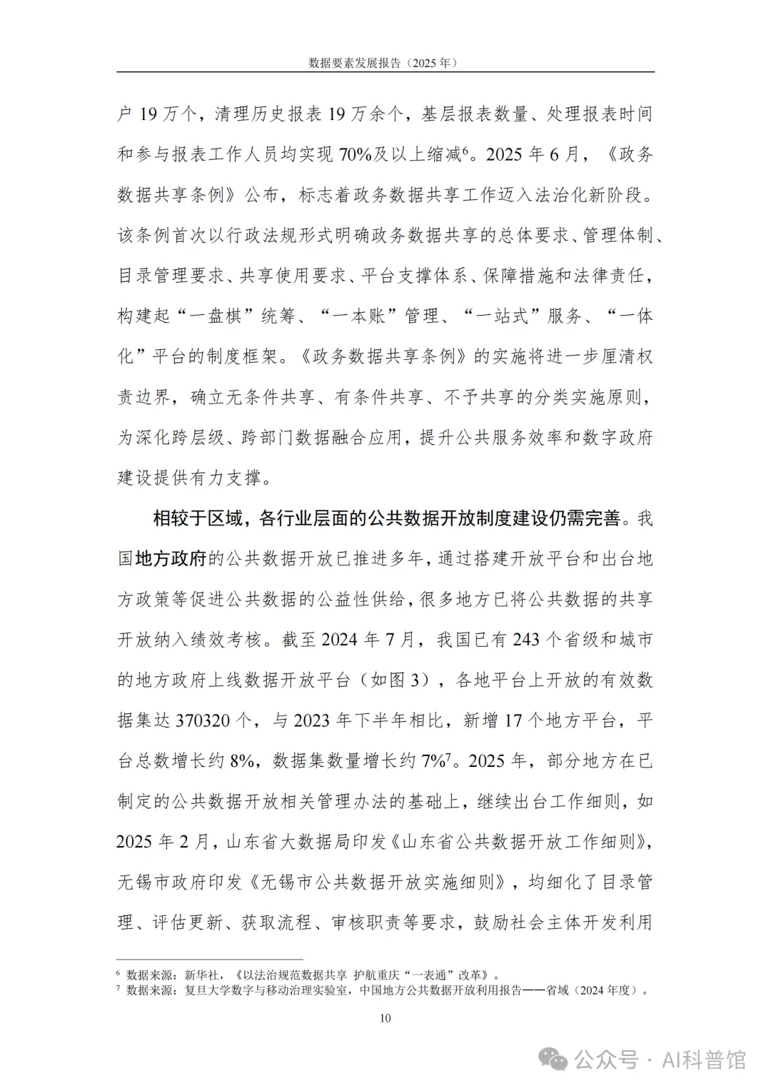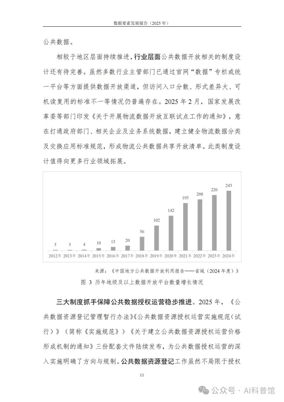 •制度:公共数据“1+3”政策体系成型,《政务数据共享条例》落地,243个地方开放平台开放数据集超37万个。