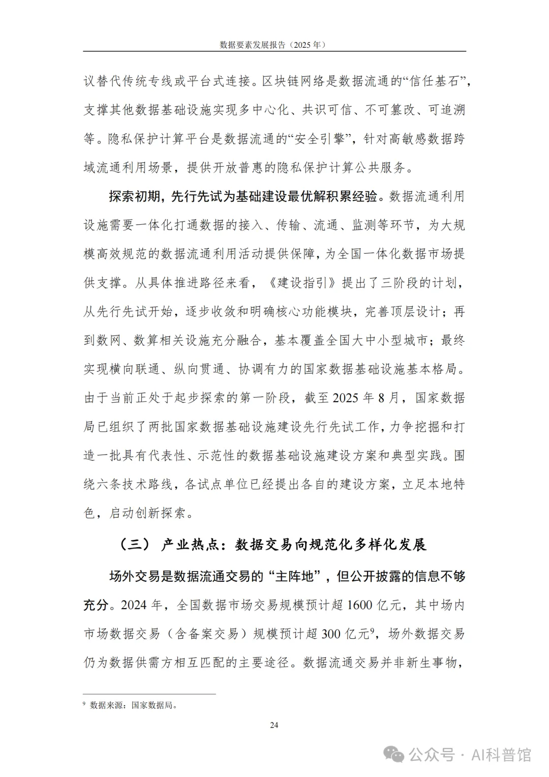 •产业:2024年数据市场交易规模超1600亿元,场外交易为主,场内交易向场景化、价格互认方向发展。