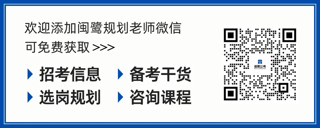 ◎欢迎添加闽鹭规划老师微信,可免费获取招考信息、备考干货、选岗规划、咨询课程