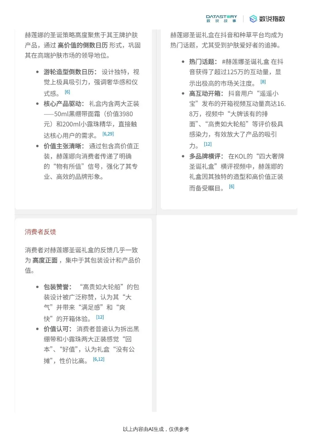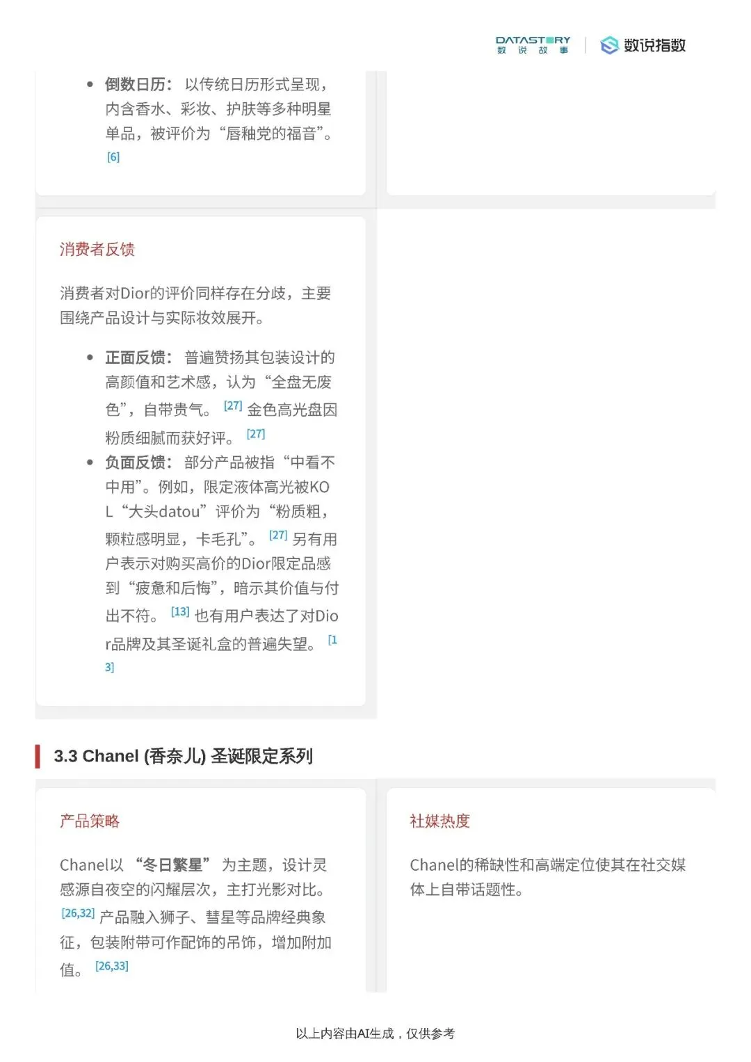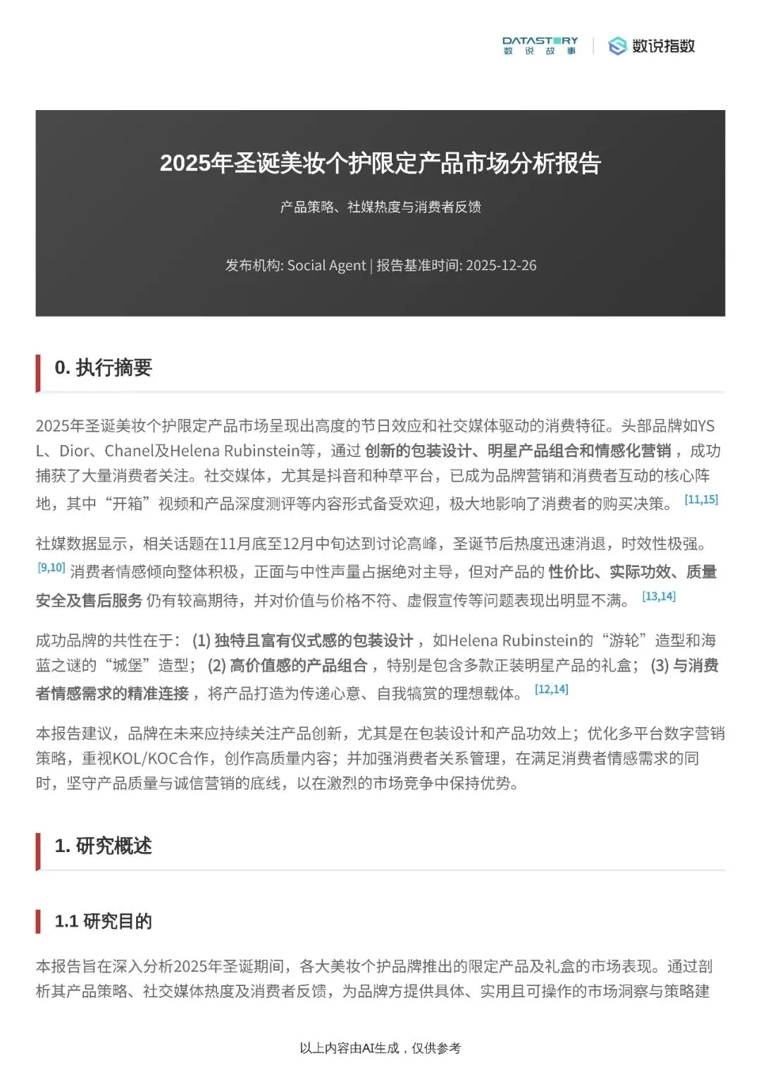 2025年圣诞美妆个护限定产品市场呈现出⾼度的节⽇效应和社交媒体驱动的消费特征。头部品牌如YSL、Dior、Chanel及Helena Rubinstein等,通过 创新的包装设计、明星产品组合和情感化营销 ,成功捕获了⼤量消费者关注。社交媒体,尤其是抖⾳和种草平台,已成为品牌营销和消费者互动的核⼼阵地,其中“开箱”视频和产品深度测评等内容形式备受欢迎,极⼤地影响了消费者的购买决策。 [11,15]社媒数据显⽰,相关话题在11⽉底⾄12⽉中旬达到讨论⾼峰,圣诞节后热度迅速消退,时效性极强。