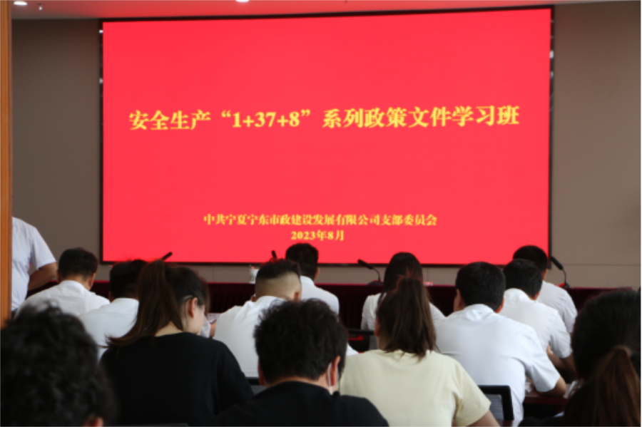 第一时间研究制定公司学习计划,深化“党建+安全生产”,制定印发了《宁东市政公司党支部关于学习贯彻自治区党委十三届四次全会精神 全面加强公司业务领域安全生产实施方案》《宁东市政公司职工安全生产综合能力提升培训方案》,将“1+37+8”系列政策文件编印成册,做到每名员工人手一本。将全会精神学习作为政治理论学习、“三会一课”的必学内容,利用中午13时至14时开展“员工午间课堂”集中学习研讨10次,组织开展全会精神及“1+37+8”系列政策文件应知应会测试,检验学习成效。结合建筑施工、物业服务、公交客运等主责主业,分别以安全生产法律法规、危险源辨识及隐患排查治理、特殊作业等十个主题,对公司员工开展为期一个月的安全培训教育,提高员工安全生产思想认识、理论知识和履职能力。在公司电子宣传屏、安全文化栏、公交车尾屏、物业服务项目电梯广告屏上持续播放自治区党委十三届四次全会精神宣传内容,不定期督查各部门、子公司学习情况,形成浓厚的学习宣传氛围。