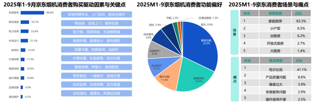 烟机消费者决策核心转向服务功能,“免费拆旧安装”成基础竞争力。负面评价集中在质价比,品牌需平衡高端化与性价比。