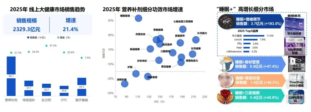 线上大健康市场规模破2300亿,增速21.4%,与家电融合紧密。细分需求+复合功效双驱动,家电品牌可依托技术切入细分赛道实现跨界增长。