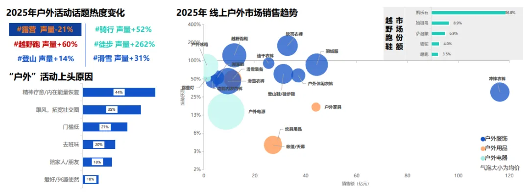 户外热潮带来跨界机遇,越野跑带动跑鞋销售额增122.7%,同时拉动便携榨汁机等家电需求。家电品牌可开发户外适配产品抢占风口。