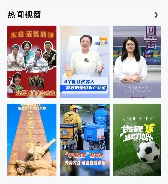2025年2月,大众号推出“趵突泉计划”,将大众号开放生产的优质内容深度挖掘、二次创作,向微博、微信视频号等全媒矩阵持续输送,让正能量与大流量同频共振。大众号“趵突泉计划”孵化的#石矶娘娘原来跟山东这座山有关# #小小村落竟藏了一个哪吒奇幻世界#等话题登上微博同城热搜榜,话题阅读量824.3万。