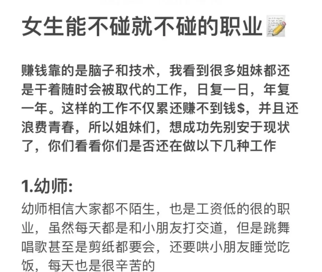 最近看了一个贴子,没想到“幼师”已经如此“不体面”,成为女生们“能不碰就不碰”的一项职业。