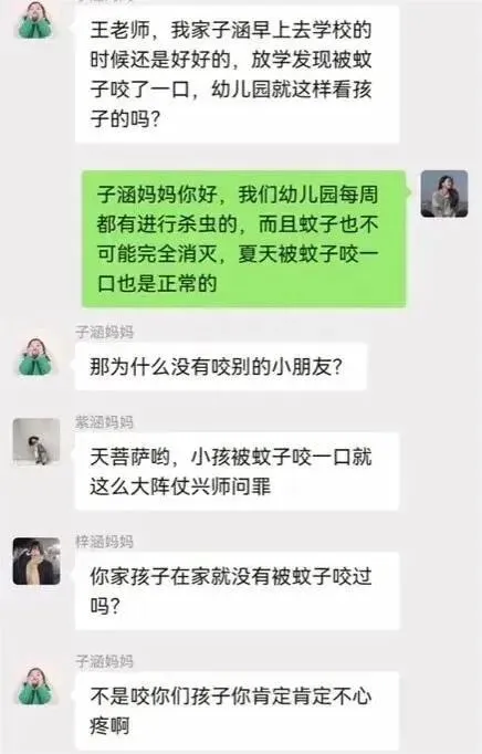 还记得2023年火爆全网的“子涵妈妈”吗?这个梗来源于一张网传图:一位“子涵妈妈”在群里说他们家的孩子子涵被蚊子咬了。随后“子涵妈妈”在群里对老师兴师问罪:“老师,我家子涵为什么被蚊子咬,幼儿园就这样看孩子的吗?”