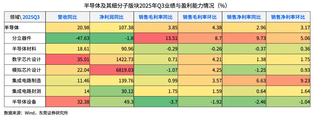 ① 设计端表现突出,受算力芯片需求激增直接驱动,数字芯片设计板块增长势头强劲;