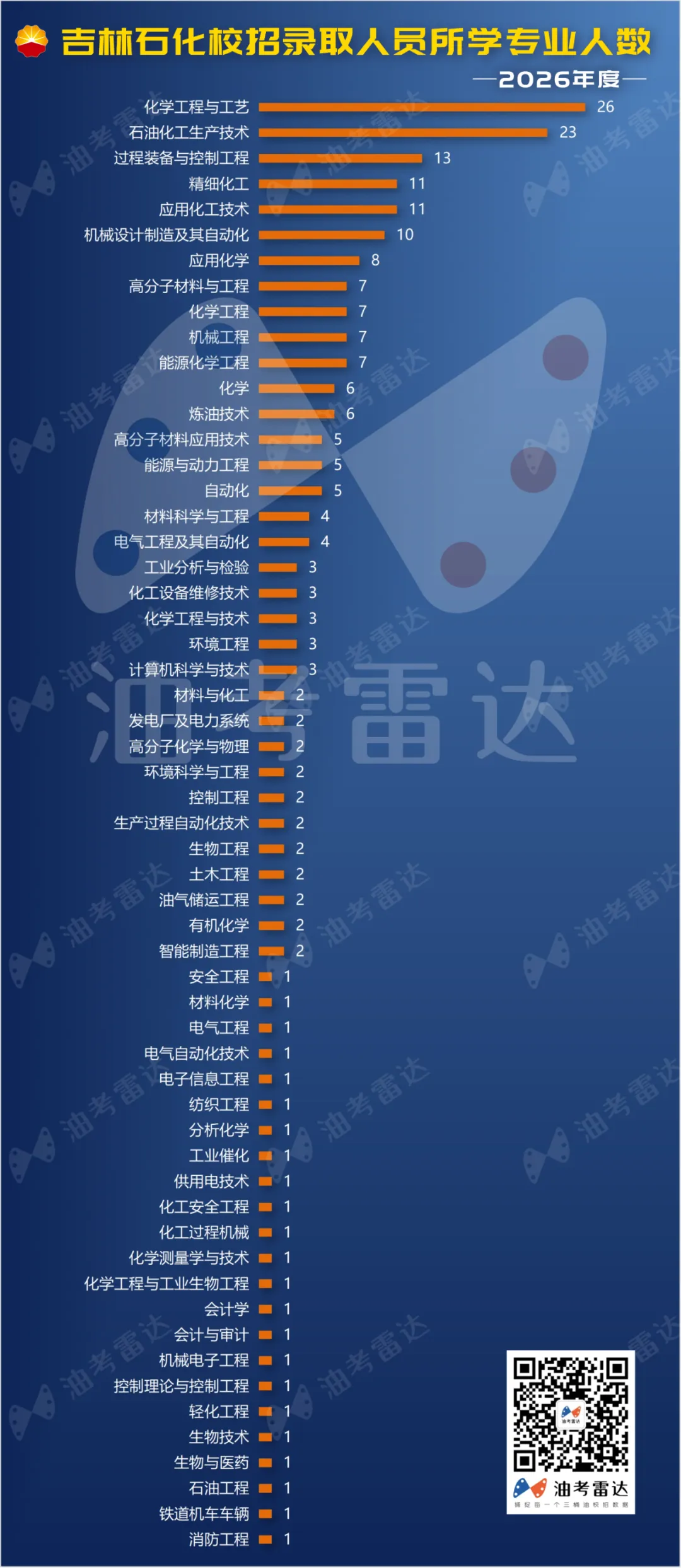 吉林石化在2026年度校园招聘中,拟录用人员所学专业为化学工程与工艺、石油化工生产技术、过程装备与控制工程等。