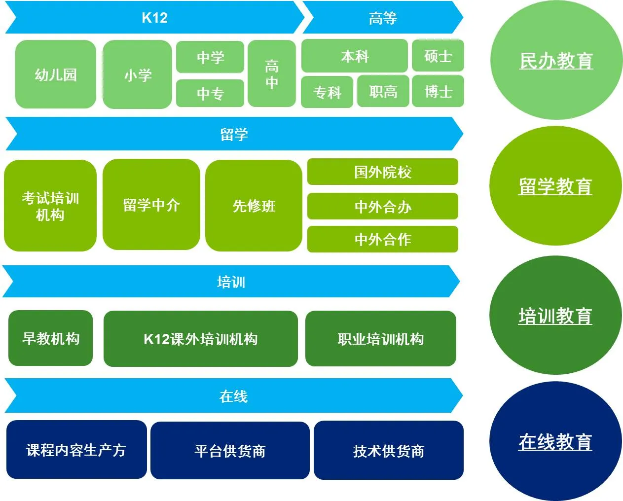 而无论是民办教育、留学教育还是职业培训教育,政策与改革将是推动教育产业与市场发展的关键因素与保障。