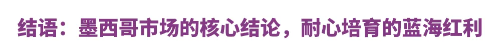 一是“区位与人口红利”——1.3亿人口,平均年龄不到30岁,消费力高于东南亚,且做好后可辐射整个西语市场(约5亿人口),甚至覆盖美国的西语人群;