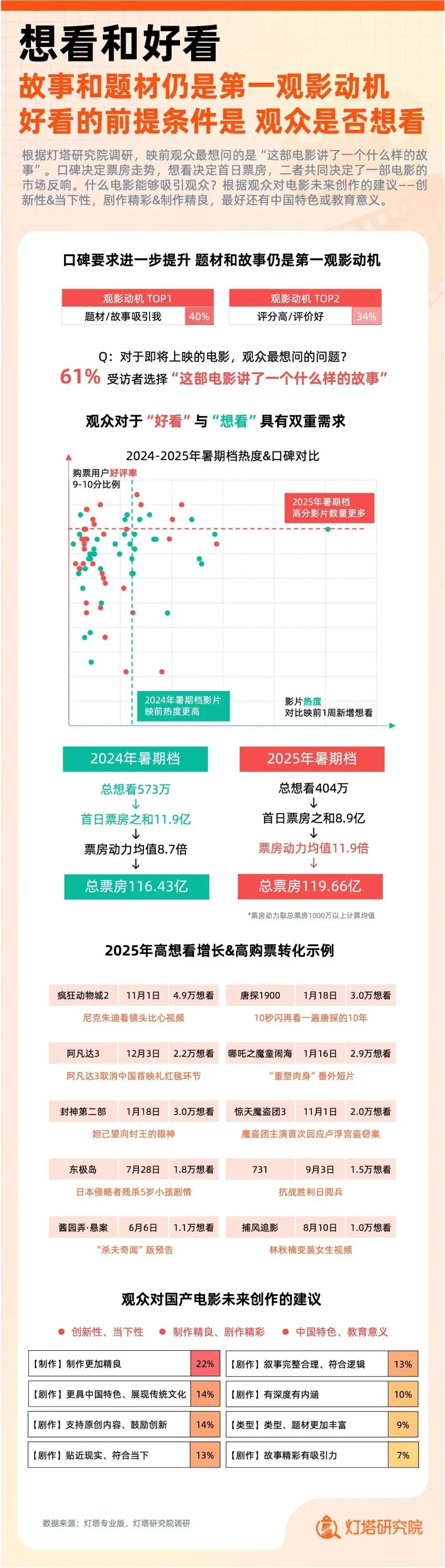 此外,观众对内容的 “创新性”“当下性” 要求提升,61% 的受访者将 “故事题材吸引力” 列为首要观影动机。