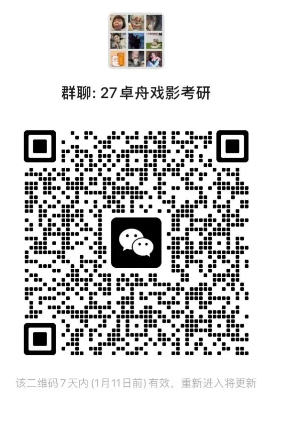 27级卓舟戏影信息共享群已建,27级戏影考研的同学可直接入群“27级卓舟戏影考研群”