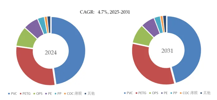 就产品类型而言,目前PVC是最主要的细分产品,占据大约47.8%的份额。