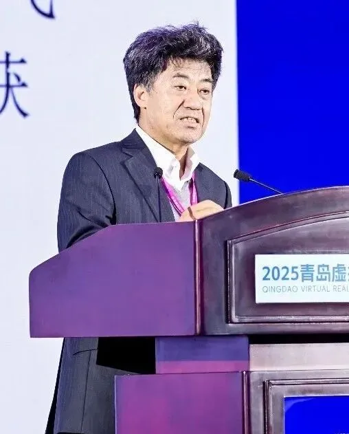 在2025青岛虚拟现实创新大会青岛虚拟智能体产业大会暨人工智能创新应用先导区第七届“百企百景”对接洽谈会上作主旨演讲