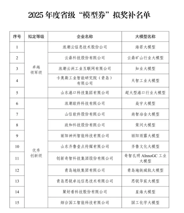 会员单位创新奇智、地铁集团、思锐卓远入选2025年度省级“模型券”“优秀创新级”项目奖补名单