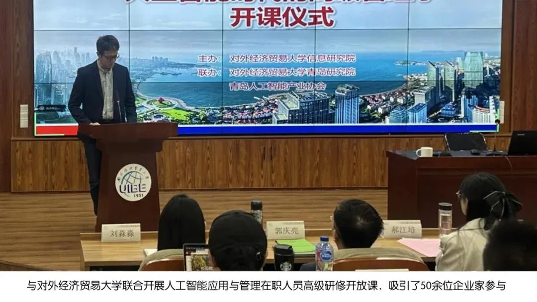 与对外经贸大学联合开展人工智能应用与管理在职人员高级研修开放课、与乐聚(山东)机器人科技有限公司联合举办的人工智能及机器人人才培养研讨班等培训,以及其他研学、科普活动10余次。