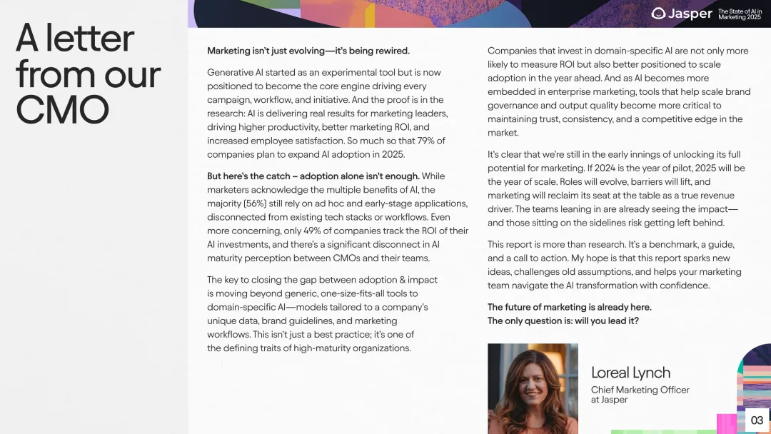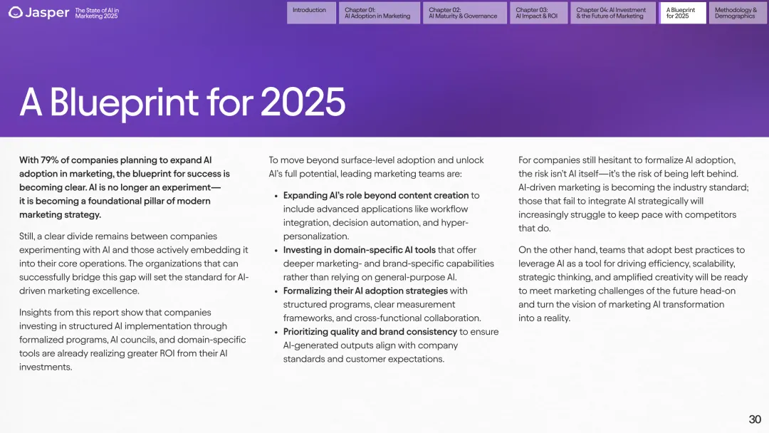 本报告基于对503位来自多个行业营销高管的调研,专业剖析了2025年营销领域AI应用的整体状态、成熟度、效益及未来趋势,呈现了AI如何重塑营销战略与团队架构的深刻见解。