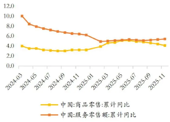 三是价格因素回暖,CPI温和回升抬升名义增速。2026年预计CPI将回升至0.4%,主要由服务类价格稳步修复、食品价格趋稳构成支撑。价格回升对消费的影响主要体现在名义值而非实际购买力增长,在社零统计中可形成一定正向拉动。尤其对于餐饮、服饰、医药、金银珠宝等品类,价格变化与销售金额高度相关。随着居民消费结构的优化升级,居民一方面在商品消费上更重性价比,一方面在情绪、悦己类消费上有更高要求,相关类别消费名义增速的修复空间相对较高。