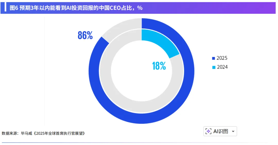A、物理式AI引领技术突破,AI+价值进入规模化兑现期人工智能正从生成式向代理式、多智能体协同演进,而物理式AI(如人形机器人、脑机接口)将成为下一突破口。中国凭借丰富场景与政策支持,有望实现“快速超车”。商业化层面,超八成CEO预期3年内看到AI投资回报,表明技术正加速转化为生产力。