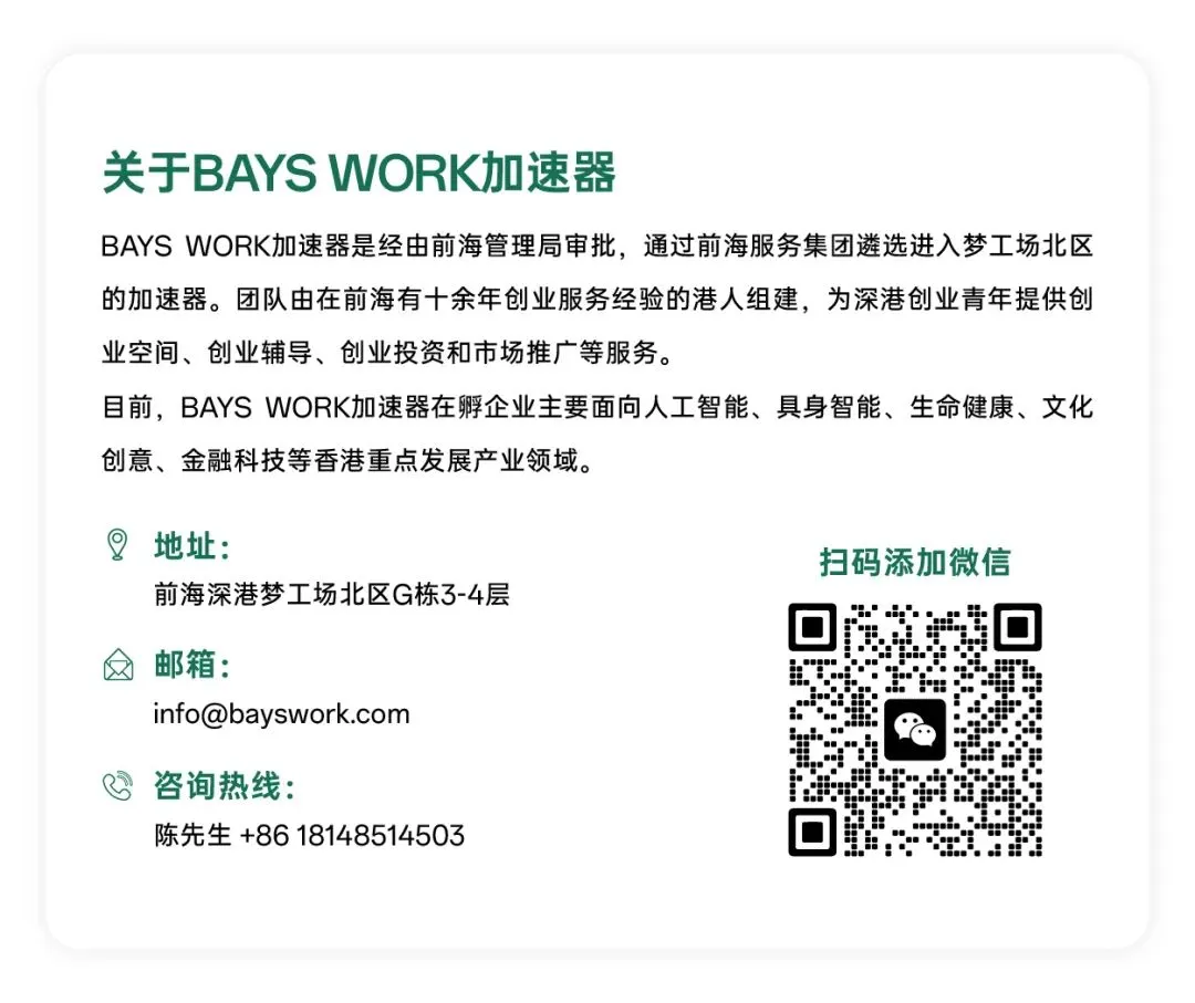 为支持港澳创新企业在内地发展,前海深港青年梦工场(下称“梦工场”)自 2024年9月起推出“一元创新坊”常态化遴选入驻政策。