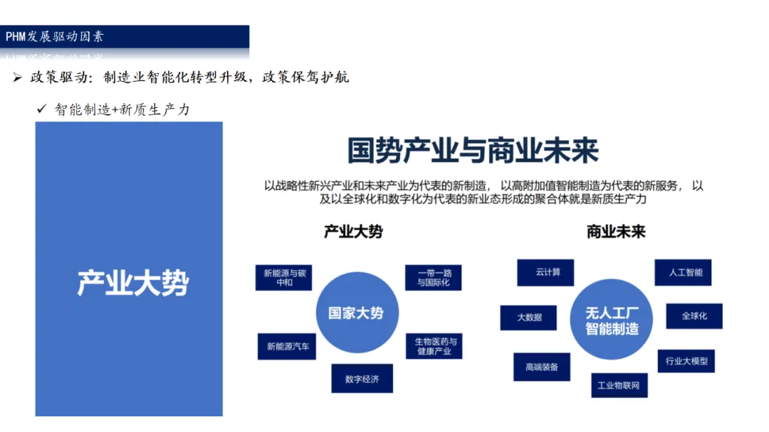 工业设备的健康管理是智能制造发展方向之一。2021年工信部、国家发改委等8部门发布的《“十四五”智能制造发展规划》中明确提及“实施大型制造设备健康监测和远程运维,保证流程安全运行:打造全生命周期数据共享平台,实现全产业链优化”,并在工业软件突破提升行动专栏提及“故障预测与健康管理软件(PHM)。随着工业自动化、智能化水平不断提升,工业设备的现维综合保障管理(MRO)”代化运维管理已经成为工业数字化、智能化转型必不可少的部分。