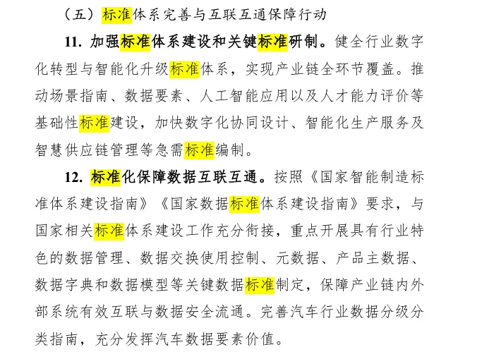 近日,工业和信息化部、教育部、市场监管总局、国家数据局等四部门联合印发《汽车行业数字化转型实施方案》,其中,方案明确指出“形成适合产业特征、国际先进的数字化转型和智能制造标准体系”以及“加强标准体系建设和关键标准研制”,这标志着我国汽车产业的数字化转型,正从技术应用与模式创新的探索阶段,迈入以标准化引领高质量发展的系统推进新阶段。