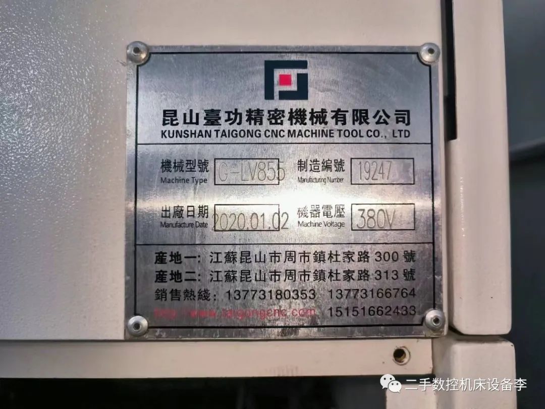 转让二手设备:2020年台功855加工中心,发那科MF plus系统,