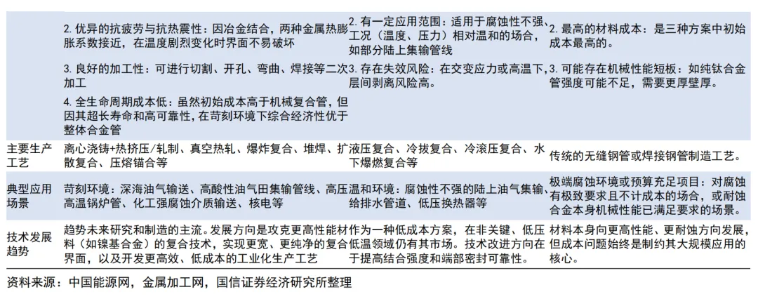 油气复合管:高壁垒的深海油气管道,开采深海化带动需求增长油气双金属复合管是一种为解决极端工况下管道腐蚀与强度矛盾而诞生的创新产品。其核心设计理念是“内外有别,各司其职”:外层采用高强度的碳钢或抗酸碳钢,为管道提供抵抗深海高压、土壤应力等所需的机械强度和承载能力;内层则覆衬一层薄薄的耐蚀合金,专门应对油气介质中高浓度的硫化氢、二氧化碳、氯化物等腐蚀性成分。双金属复合管的关键在于“复合”方式。根据内外层金属的结合形式,主要分为机械复合与冶金复合两大类。机械复合主要通过液压、冷拔等物理方式使内外管过盈配合,结合强度相对较低(普遍≥0.5MPa),在高温或压力剧变下可能存在内衬层塌陷的风险。而冶金复合管则是通过离心浇铸、热挤压、轧制等工艺,使两种金属在界面处实现原子间的冶金结合,形成牢固的过渡层,其结合强度可高达140MPa甚至210MPa以上,从根本上解决了层间分离的问题,性能更为可靠。对油气双金属复合管的需求主要源于油气勘探开发向深海、超深井、高酸性油气田发展大趋势。当前浅海、易挖掘的油气田开采程度高、存量日益减少,开采方向正在向深海、超深井演变。在深海环境中,管道外部需要承受低温、高压(如38.8兆帕)以及高盐微生物的腐蚀;内部则要输送含有高硫、高酸、高氯化物的腐蚀性油气介质。单一材料的管道难以同时满足内外两种截然不同的性能要求。经济性方面,双金属复合管仅在内壁使用少量贵金属(可节约贵金属约70%),外层用相对廉价的碳钢承担结构功能,在保证安全性的同时实现了显著的成本优化。中东本土化战略带动基建高需求,公司设立中东制造基地中东地区油气复合管行业正迎来显著的发展机遇。根据QYResearch的预测,中东及非洲地区(MEA)的复合管消费市场份额增长相对较快,在2024年至2030年期间的年复合增长率(CAGR)预计约为4.28%。在本土化策略下,中东本土的油气基建有望迎来高增。中东地区是全球能源供应的核心,面对全球能源转型和国内经济多元化的双重压力,中东主要油气生产国家积极推进油气行业的本土化战略,策略的核心已从过去的“强制代理制”转变为以量化指标驱动的“价值创造”模式,旨在将油气财富转化为可持续的本土产业能力和就业机会。考虑到本土化战略的影响,中东本土的油气基建增速或将远高于4.28%。公司积极拓展海外油气市场,前期重点开发中东地区。2025年7月30日,公司与苏州威尔汉姆堆焊技术有限公司签署《合作框架协议》,共同成立国内合资公司(合资公司由博盈特焊控股、威尔汉姆参股)。双方将依托国内成立的合资公司,积极开拓油气市场及海外市场,在海外(前期是中东地区)择机、择地,设立海外制造基地,拓展产品应用市场。堆焊市场竞争加剧、堆焊海外拓展不及预期、海外余热锅炉需求不及预期、油气复合管业务拓展不及预期的风险。