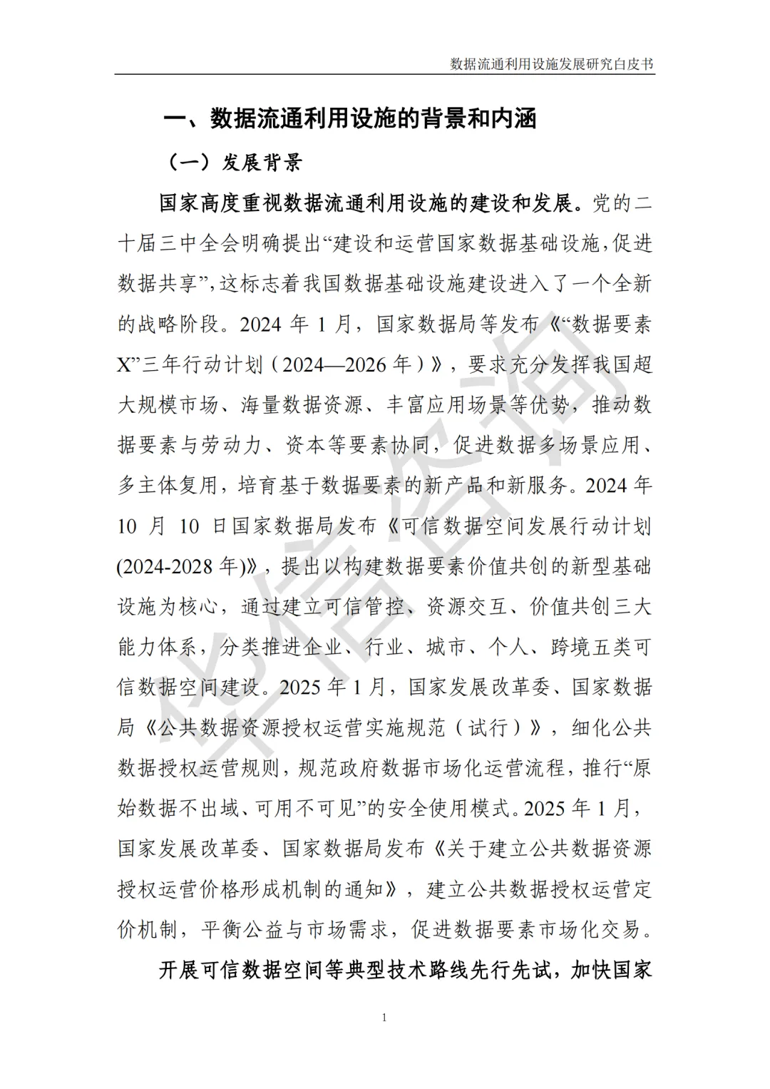 数据流通利用设施作为国家数据基础设施的核心组成,是实现数据采集、汇聚、传输等八大能力的关键载体,涵盖可信数据空间、数联网等多项技术设施,为跨场景数据流通提供安全可信环境。其发展受到国家政策强力推动,《可信数据空间发展行动计划》等政策密集出台,10 个国家数据要素综合试验区及多项试点工作有序推进,形成东中西部协同发展格局。