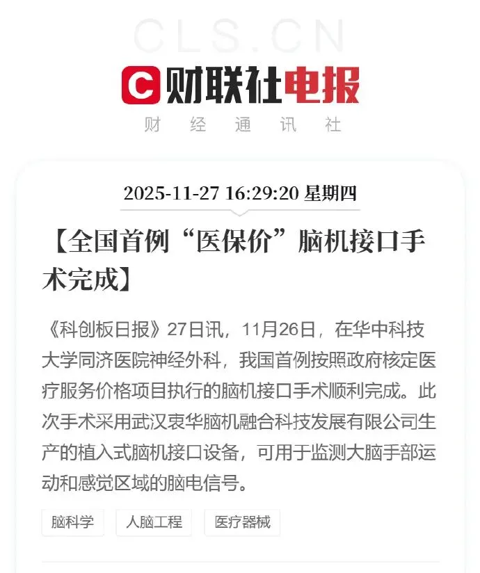 ·医保支付扩大:关注脑机接口治疗项目是否进入更多省级乃至国家医保目录,这是医疗市场放量的关键阀门。