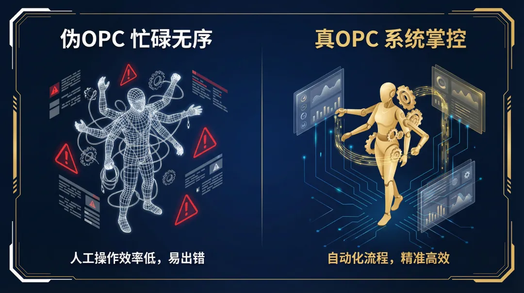 伪OPC未必赚不到钱,甚至可能赚得很多。 但这是一种**‘旧时代的红利’**。就像汽车已经发明了,你却还在苦练骑术——你或许跑赢了身边的马车,但你注定会被高速公路上的规则无情碾压。