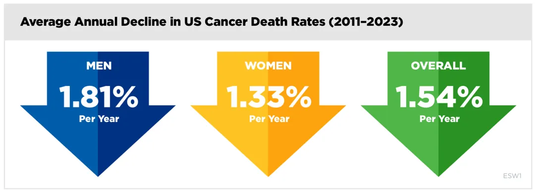 AACR《癌症进展报告》编撰始于2011年《国家癌症法案》颁布40周年之际,核心使命为“凝聚全球科研力量,协同探索癌症治愈路径”。2025年恰逢该系列报告刊行15周年,这份里程碑式学术文献不仅系统总结过去十年癌症研究的标志性成果,更聚焦当前领域核心挑战与未来发展方向——从基础生物学机制解析到临床治疗技术革新,从风险防控体系构建到健康公平性推进,全方位呈现癌症科学与临床医学的整合发展脉络。报告由全球顶尖癌症领域专家组成的指导委员会牵头编撰,包含29个核心章节、59个专题侧边栏、8张关键数据表及12幅核心图表。数据来源涵盖美国国家癌症研究所(NCI)、食品药品监督管理局(FDA)、疾病控制与预防中心(CDC)等权威机构,同时纳入2024年7月至2025年6月期间发表的最新临床研究成果与政策文件,兼具学术严谨性与临床实践指导价值。二、癌症防控整体进展:死亡率持续走低,幸存者群体显著扩容