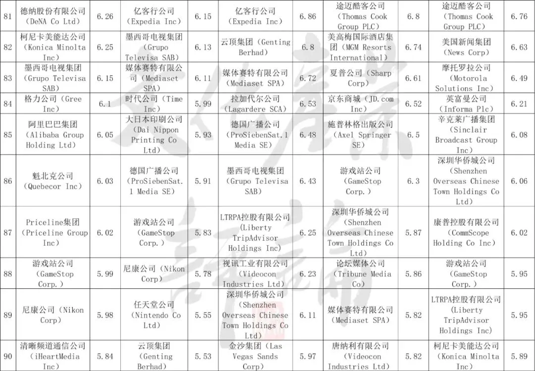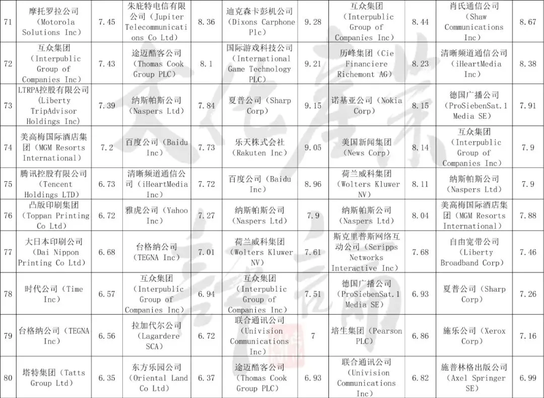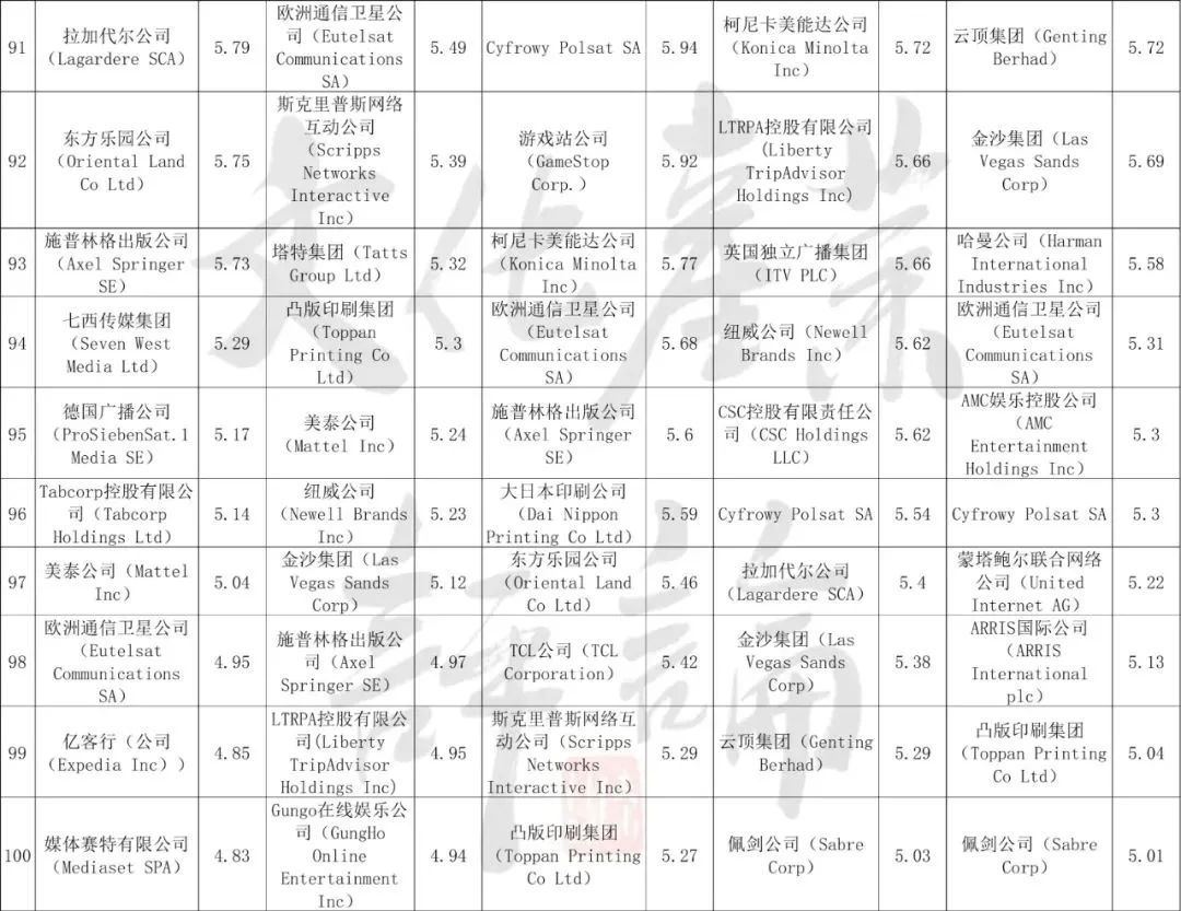 (2)从全球文化创意产业上市公司研发投入百强榜单来看,百强企业“三大梯队”特征明显