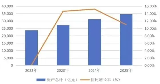 图1 2022-2025年宁波银行总资产与增长率