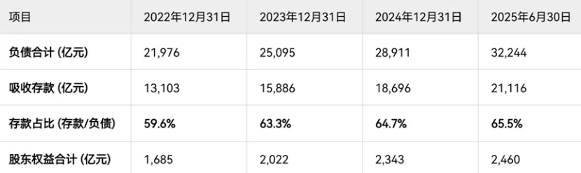 表3 2022-2025年宁波银行负债与权益