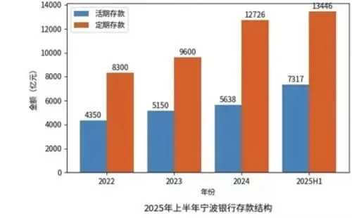 图4 2022-2025年宁波银行活期与定期存款占比