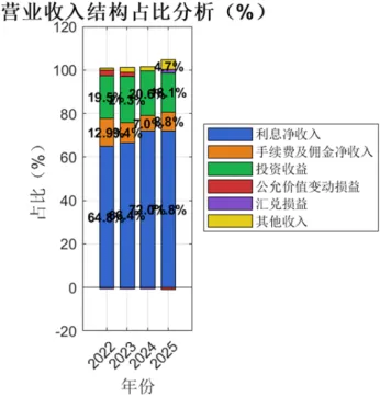 图8 2022-2025年宁波银行营业收入结构占比分析(%)